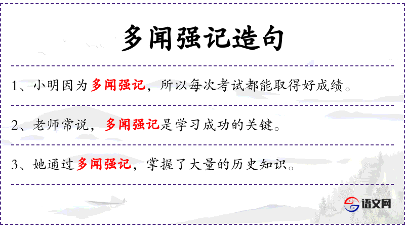 - “通过多闻强记,可以有效提高记忆力。”