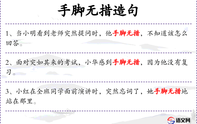- 手脚无措:形容词性短语,表示不知所措,无法应对。