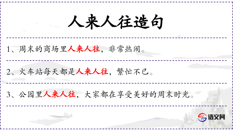 - 主语:“人来人往”是句子的主语,描述了商场中人们的活动状态。