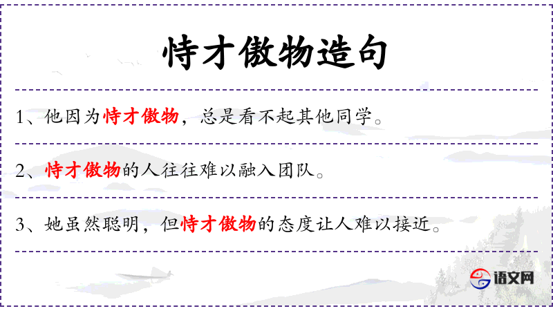 - 状语:因为恃才傲物,总是