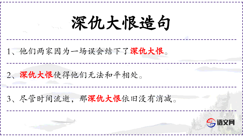 4. 【敌意】 - 仇视的心理;敌对的情感:心怀~|露出~的目光。