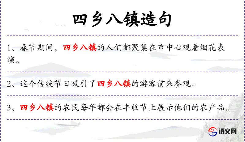 - 50周年:表示某个*发生后的第五十年。 . 四乡八镇:泛指周边的乡村和城镇。