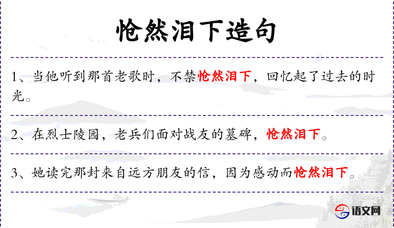 句子:“当他听到那首老歌时,不禁怆然泪下,回忆起了过去的时光。”