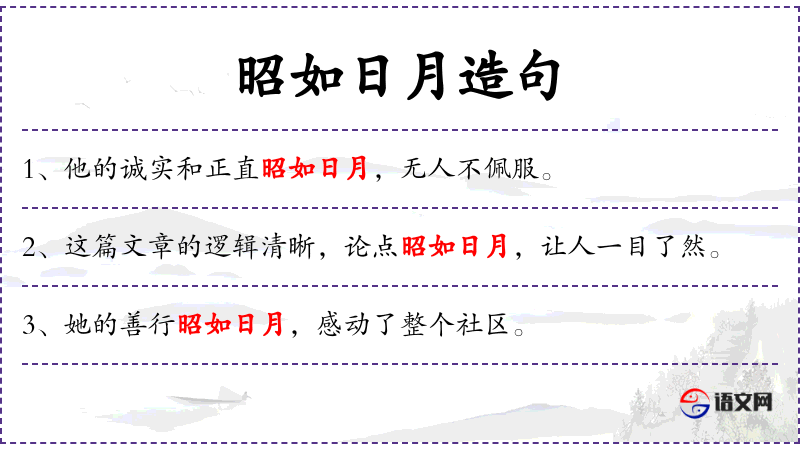 5. 【昭如日月】 昭:明显。像太阳和星星那样明显。形容丰功伟业,人所共见。同“昭如日星”。