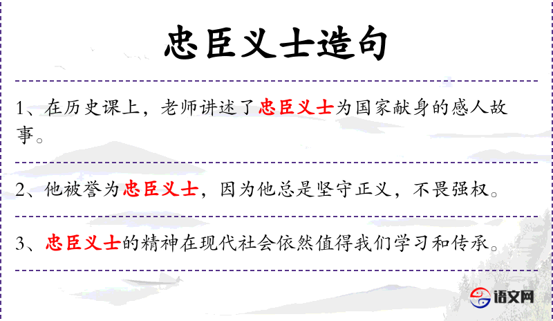 句子:“忠臣义士的精神在现代社会依然值得我们学*和传承。”
