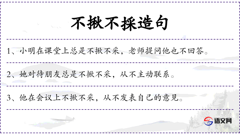 在实际交流中,这个句子可能用于批评或描述某人的行为。使用“不揪不采”和“从不积极参与”这样的表达,可能带有一定的负面评价或不满情绪。