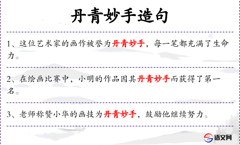 - 文化背景:“丹青妙手”是**传统文化中的一个成语,用来形容绘画技艺非常高超的人。
