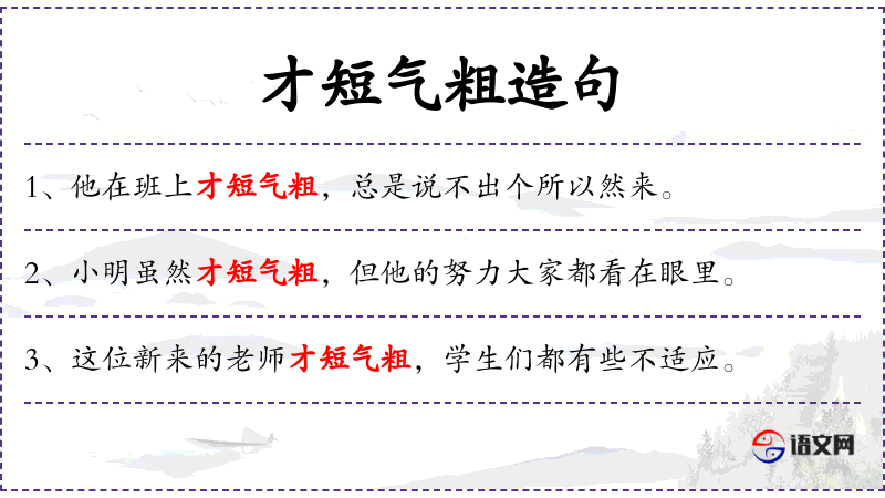 1. 【才短气粗】 才:才识;短:短浅;气:气质。缺少才干,气质粗鲁。