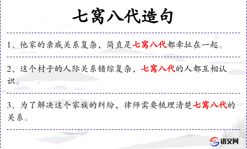 - 主语:“七窝八代的亲戚”