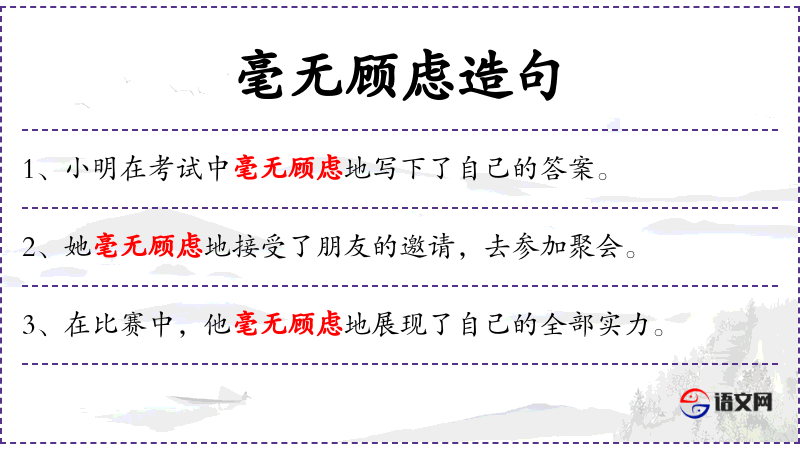 1. 【毫无顾虑】 - 丝毫没有后顾之忧。