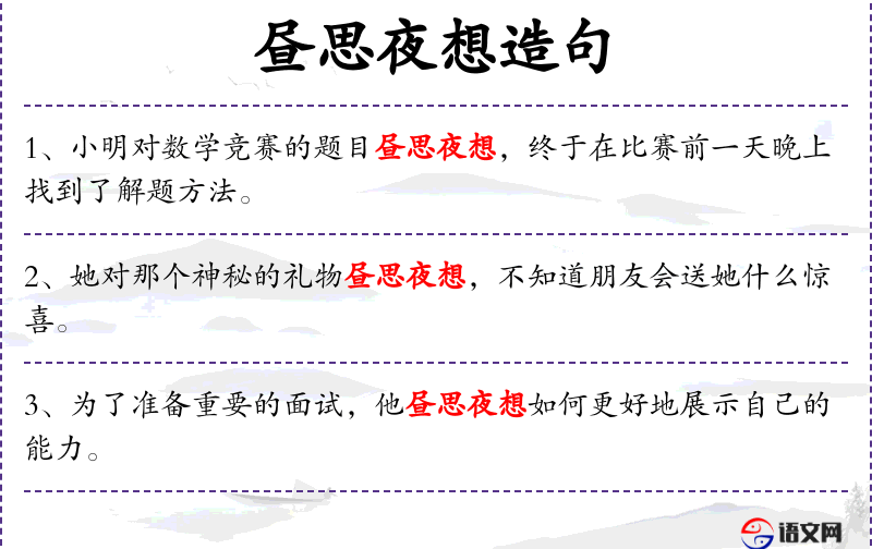 1. 【昼思夜想】 - 昼:白天。日月想念。形容思念极深。