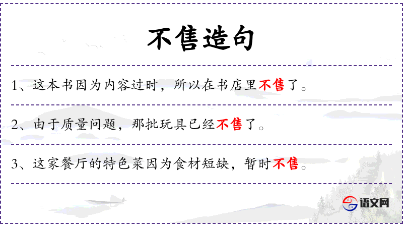 1. 【不售】 - 卖不出去; 指嫁不出去; 指考试不中; 不能实现; 没有应验。