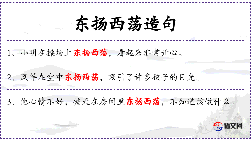 - 东扬西荡:形容词性短语,描述孩子们活动的样子,意为四处游荡。
