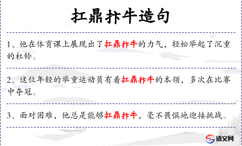 - 扛鼎抃牛:这个成语源自古代,反映了人对力量和勤劳的赞美。