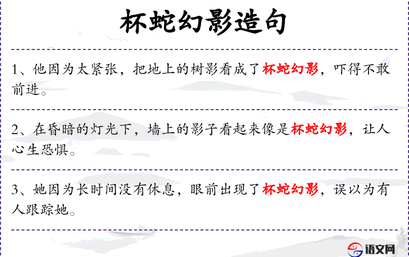 4. 【杯蛇幻影】 - 比喻疑神疑鬼,自相惊扰。同“杯弓蛇影”。
