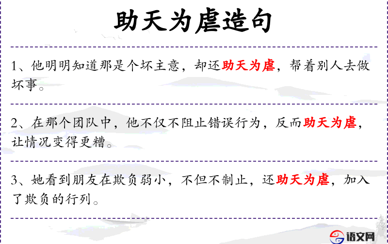 助天为虐这个成语在**文化中常用来形容帮助坏人做坏事,反映了传统文化中对正义和道德的重视。