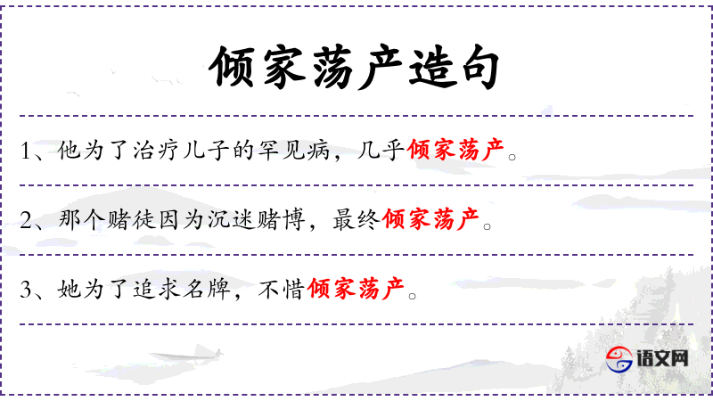 - 宾语:倾家荡产