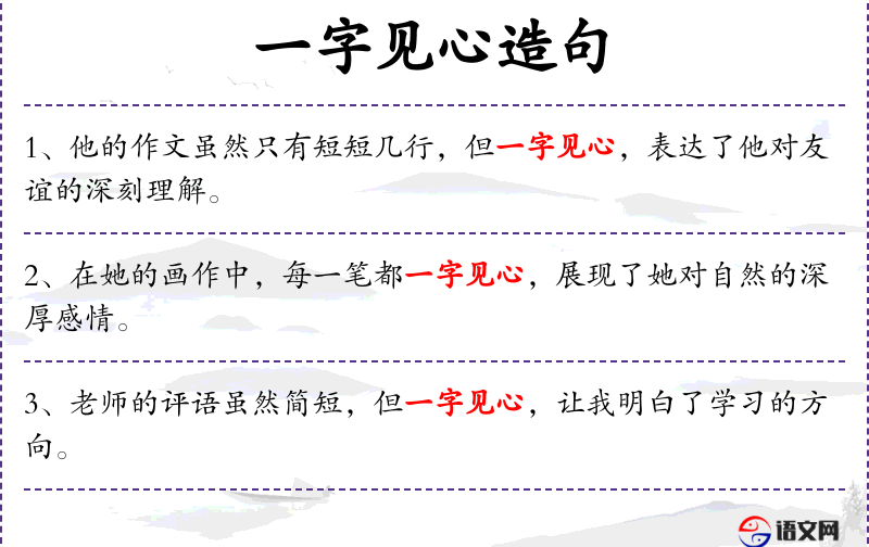 成语“一字见心”源自**传统文化,强调文字的力量和深度。这个成语常用来形容文字虽少,但意义深远,能够直接触动人心。