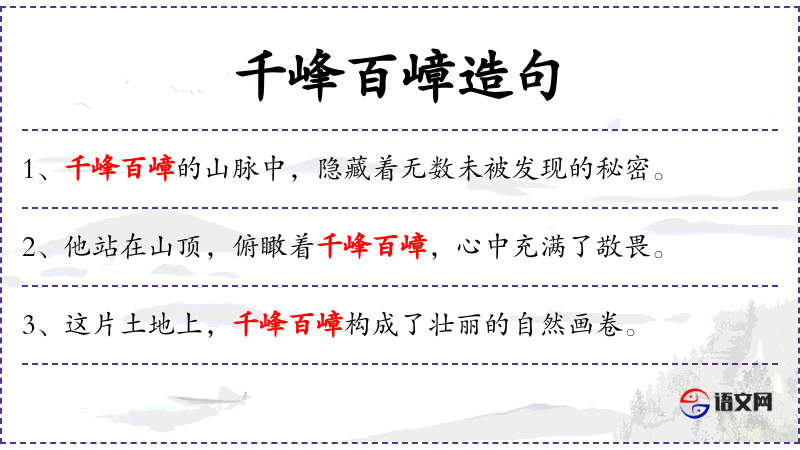 - 千峰百嶂:名词短语,形容山峰众多。