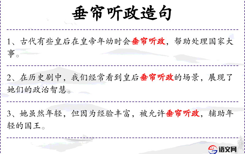- 历史背景:如慈禧太后在清朝时期的垂帘听政。