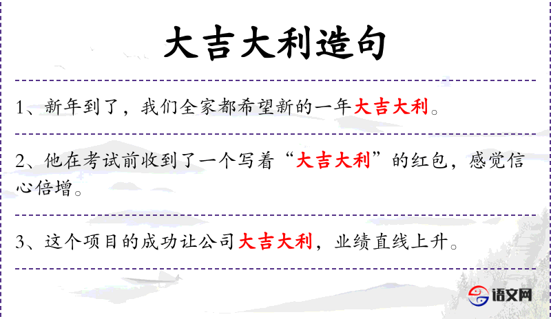- 大吉大利:成语,表示非常吉祥和顺利。
