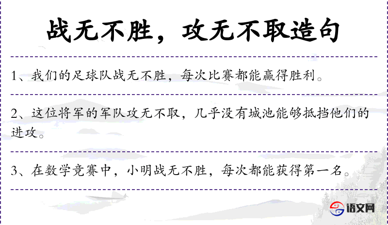 - 战无不胜:表示在战斗中总是能够取得胜利,常用来形容团队或个人的强大实力。