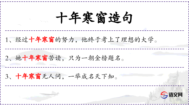 - 十年寒窗:指长时间刻苦学*,寒窗指读书的环境艰苦。