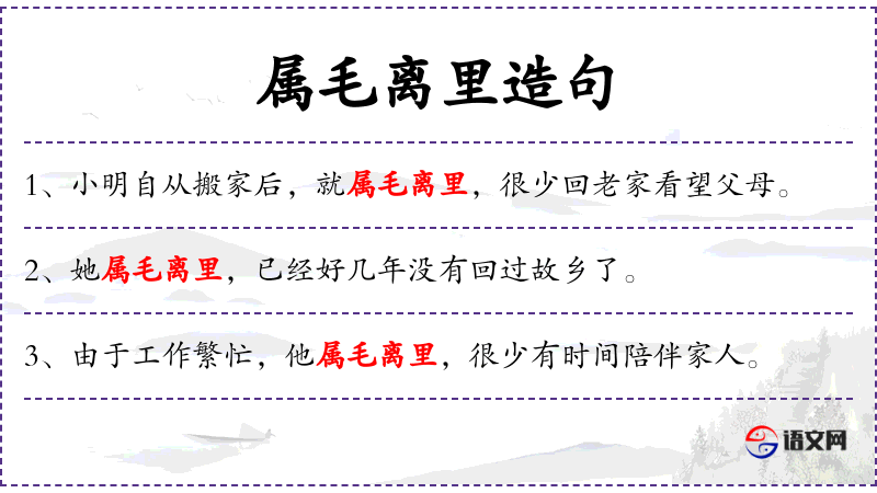 - 属毛离里:可能是笔误或方言,通常应为“属于忙碌”或“忙于工作”