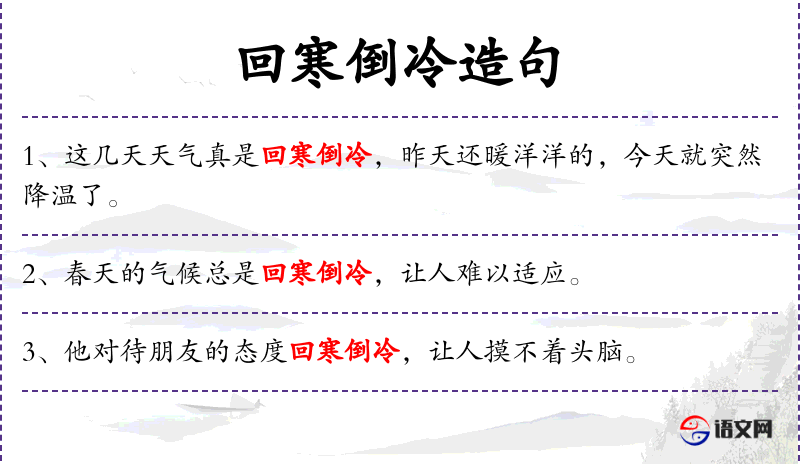 - 寒倒冷:形容天气突然变冷。