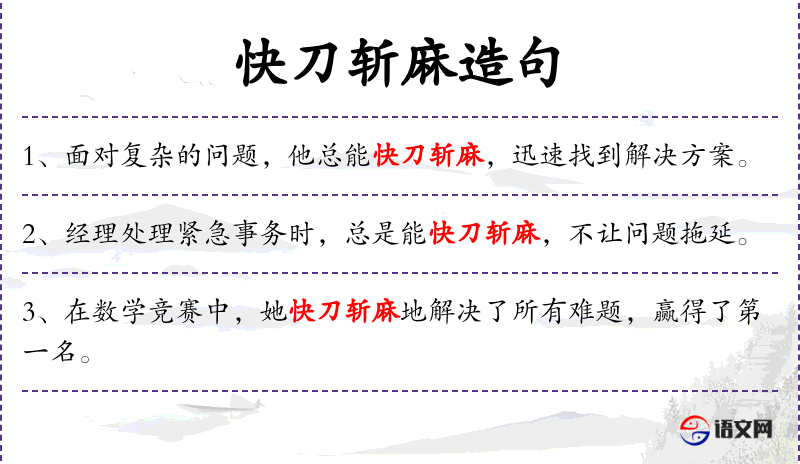- 快刀斩麻:这个成语源自**古代,比喻处理问题迅速而果断。