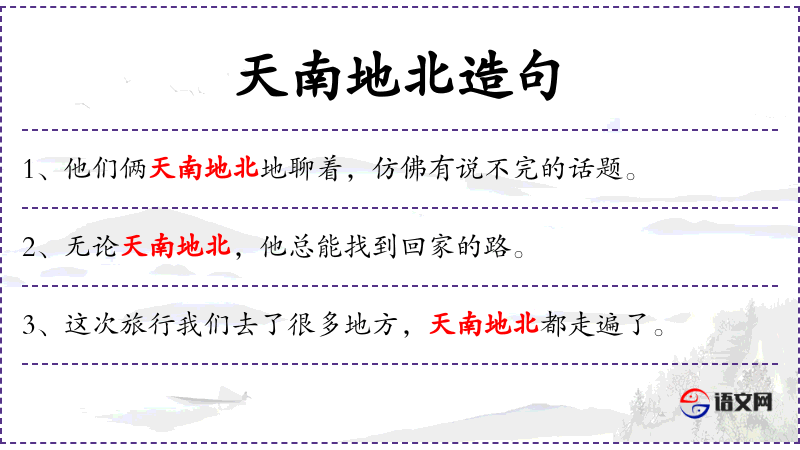 - 天南地北:这个成语在**文化中常用来形容距离遥远,也常用于形容爱情的广泛和深远。