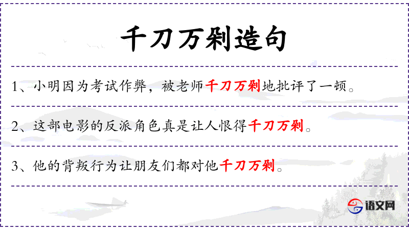 - 千刀万剁:这是一个比喻,形容极度的愤怒或报复欲望,通常用于夸张表达。