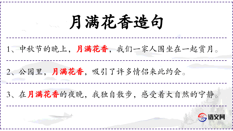 4. 【月满花香】 - 明月正圆,百花飘香。指良辰美景。