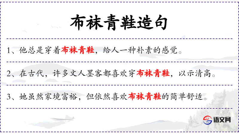 句子:“这位老者常年穿着布袜青鞋,显得非常朴实无华。”