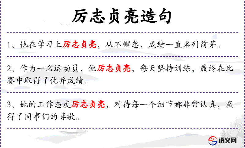 - 厉志贞亮:形容词,意为坚定、正直、光明磊落。