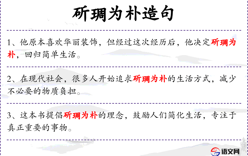 - 斫琱为朴:原指削减雕琢,使之朴素,这里比喻减少繁琐和奢华,追求简单。