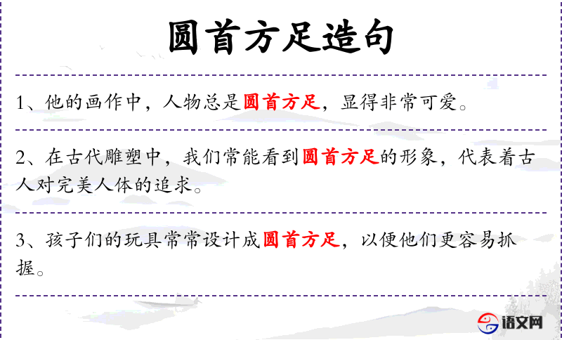 - 宾语:“圆首方足”