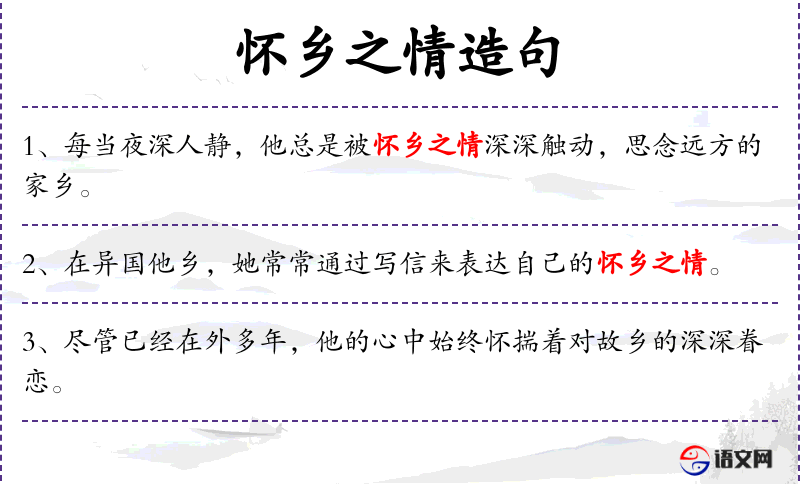 - 怀乡之情:对家乡的思念和情感。