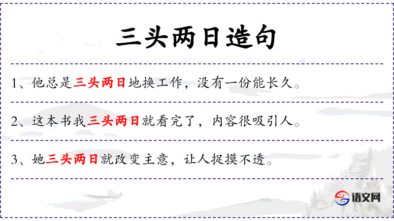 1. 【三头两日】 - 三二天。形容时间相隔很近。
