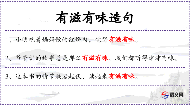 3. 【有滋有味】 - 指十分有味道,生动