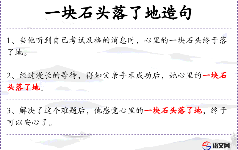 - 心里的一块石头落了地:比喻心中的担忧或压力得到释放,感到轻松。