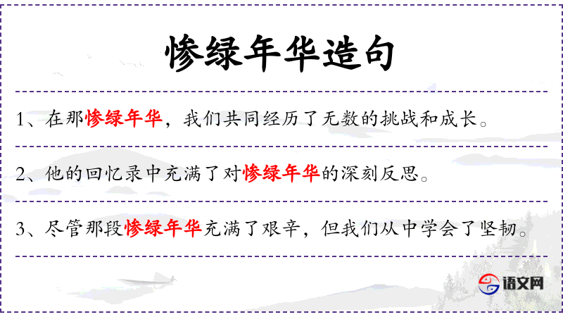 - 惨绿年华:这个表达可能源自**文化中对青春期的特定描述,强调青春时期的挑战和成长。