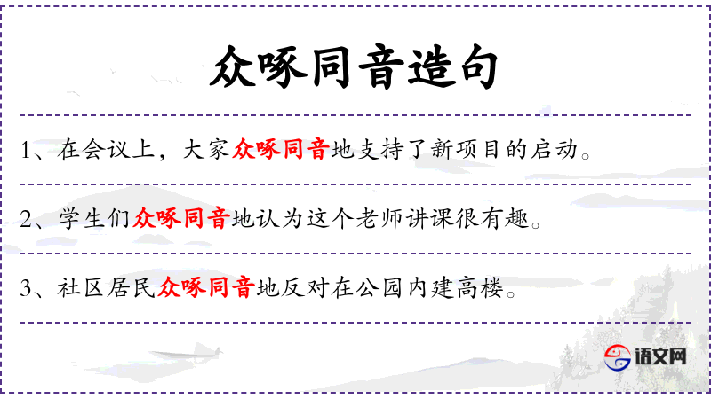 - 英文:使用了“unanimously”来表达“众口同音”的意思。
