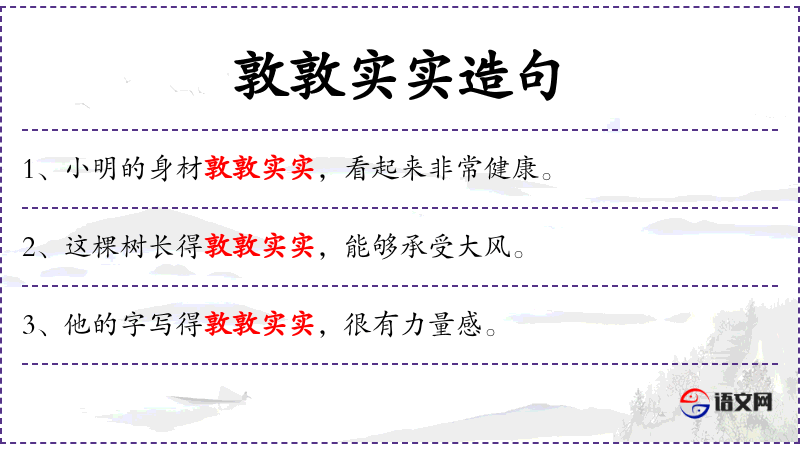 - 敦敦实实:形容词,意指内容充实、实在,没有虚假或空洞的部分。
