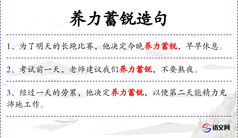 - 养力蓄锐:指积蓄力量,准备迎接挑战。