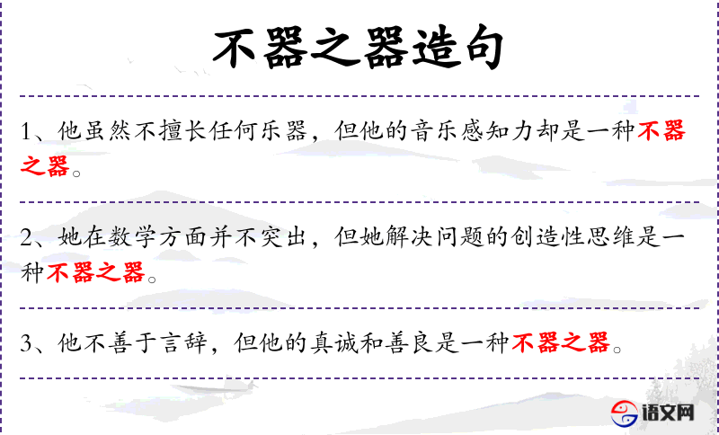 2. 【不器之器】 - 不器:不象器物那样只有某一方面的作用,即不同于一般的才能。指具有全才的人。