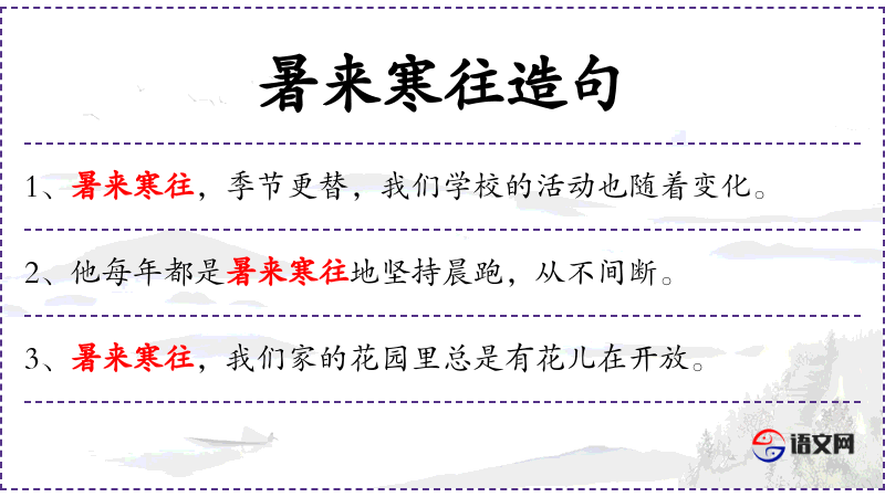 4. 【暑来寒往】 - 夏天过去,冬天到来。泛指时光流逝。