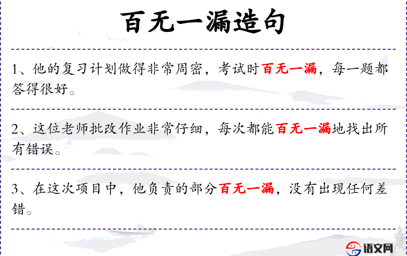 2. 【百无一漏】 - 干一百件事,没有一件疏漏。形容有完全把握,不会失手。