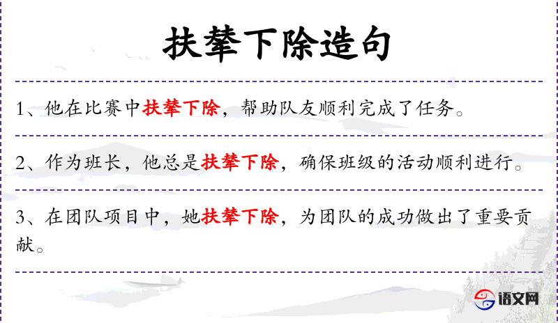 句子:“他作为团队的核心成员,经常扶辇下除,带领团队克服各种困难。”