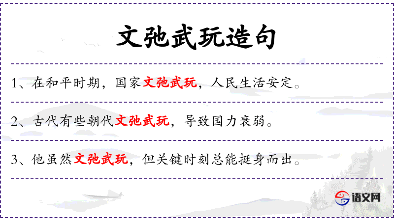 - “由于文弛武玩,古代某些朝代的国家实力逐渐衰弱。”